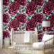 Bourgondische rozen en salie groen gebladerte naadloos patroon. waterverf AI illustratie.