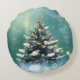 Mooie kerstboom met sneeuw en gouden lampjes rond kussen