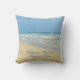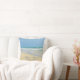 Een prachtig strandhuis gooit een kussen met een prachtige zeebodemfotografie met een sandpiper die op een zonnige zomerdag aan de rand van de oceaangolven staat. Mooie blauwe groene golven rollen op de zandkust waar jouw naam gepersonaliseerd is in schattige blauwe typografie. Tropisch eilanddeken.
