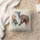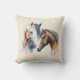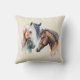 Een kussen met een prachtige waterverf tekening. Met een paar paarden, bruin en wit. Hoofd en hals zichtbaar met druipende verf langs de basis van hun hals. Zuidwestelijke sfeer.