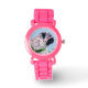 schilderij van een fawn kleurige pug puppy op het gezicht van een mooi polshorloge.