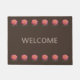 Mooie roze rozen op bruine deurmat. De welkome tekst kan worden gepersonaliseerd.
