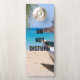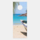 Stoor de deurhanger niet met een idyllische tropische strandscène. Turquoise blauw kristalhelder water en een zacht bruin zandstrand. Een paar palmbladeren die van boven hangen. Een oude houten roeiboot zit op het strand. Een sereen en vredig landschap.