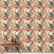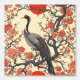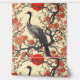 Mooie Vogel Planten Rood Zwart Aziatisch Behang