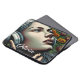 Gepersonaliseerd tablet hoesje. Een kunst die een vrouw in een hoofdtelefoon in een zonnebloemveld afbeeldt terwijl ze naar muziek luistert.