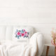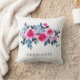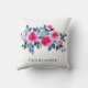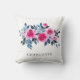en elegant ontwerp met kussen met felroze waterverf rozen, blauw en grijs foliage op een witte achtergrond. De tekst kan worden veranderd.