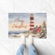 Mooie Winter Vuurtoren Scène Vrolijke Kerstmis Deurmat
