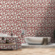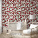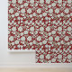 Mooie witte bloemen Ornament op rode achtergrond Behang