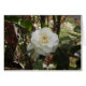 Mooie witte kamellia-bloem tegen een donkergroene bladerachtergrond. Stuur dit naar de tuinman in je leven.