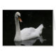 Deze schattige kaart bevat een foto van een mooie witte zwaluw. De zwaan is een mannelijke modderzwaluw, je kunt zien dat hij mannelijk is aan de zwarte bult op de snavel. De zwanen zwellen op een kalm meer op een gracieuze manier over het water.