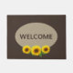 Mooie zonnebloemen op bruine binnenhuismat. De welkome tekst kan worden gepersonaliseerd.