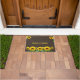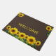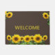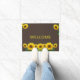 Mooie zonnebloemen op bruine binnenhuismat. De welkome tekst kan worden gepersonaliseerd.