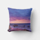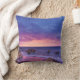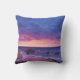 Kussen met een mooie foto met opvallende kleuren van paarse, blauw en roze bij zonsondergang. Een kustlijn verspreid met rotsen.