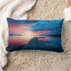 Een kussen met een prachtige foto. Een schilderachtig plek. Een mooi kalm meer met een houten dok die zich naar buiten uitstrekt. De ondergaande zon zorgt voor prachtige kleuren aan de hemel, levendig rood en blauw.
