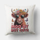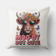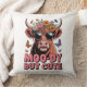 Een aandoenlijke hooglandkoe met bloemen en vlinders. Typografie van Moo-ierig Maar Schattig. Achtergrondkleur kan worden toegevoegd.