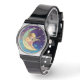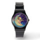 MOON ANGEL IN BLUE GOLD YELLOW SPARKLES HORLOGE