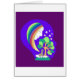 Een regenboogharige vrouw kijkt rustig over een puppy onder een boom. De kaart is leeg aan de binnenkant.