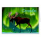 Een ooit zo licht gestileerd afbeelding van een mos gesilhoueterd tegen de Noordelijke Lichten. De tekst "Canada" wordt weergegeven in blauw en wit glanzend.