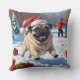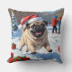 Mopshond loopt in de sneeuw met kerst Pet Kussen