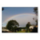 Een vroege ochtendregenboog waarin het vertrek van de stormen wordt aangekondigd, is over het voorstedelijke landschap gedraaid.