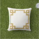 Mosterd en witte Griekse sleutel | Bewerkbare kleu Buitenkussen