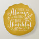 Mosterdgeel altijd dankbaar citaat Thanksgiving Rond Kussen