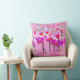 Deze kunstafdruk toont een offset weergave van mottenorchideeënbloemen in delicate kleurtinten tegen een doorschijnend doek met een heldere paarse verticale lijnbekleding, waardoor een mooi werpkussen ontstaat.