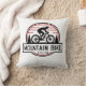Een stijlvol kussen met een dynamische fietsillustratie met de quote "Mountain Bike", die de geest van vrijheid en avontuur op twee wielen vastlegt