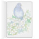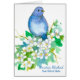 Een blanco briefkaart versierd met een bergblauwvogel op een Syringa, mock sinaasappel, bloeiende struik beschilderd met waterverf. Het ontwerp is geïnspireerd op de staatsvogel en staatsbloem voor Idaho.
