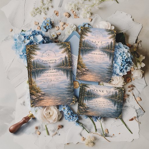 Mountain Lake Forest Reflection Wedding Save The Date