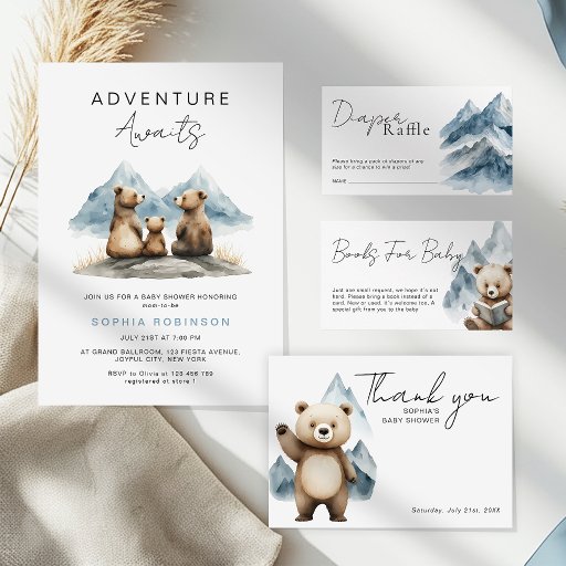 The simple typography ensures the message is clear and easy to read. A dedicated name line allows guests to fill in their details for the raffle drawing. This enclosure card pairs perfectly with an “Adventure Awaits” baby shower theme and coordinates beautifully with matching invitations and inserts. It is ideal for woodland, mountain, or gender-neutral celebrations.