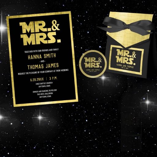 Mr en Mrs Black Gold Sci Fi Theme Wedding Ronde Sticker