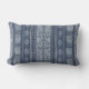 Stijlvolle marineblauw en witte modderdoek inspireerde in de buitenlucht lumbaalkussens met een etnische tribale geometrische afdruk met driehoeken, diamanten, vierkanten en verticale strepen op een linnen textuur die er als achtergrond uitziet.