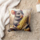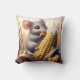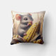 Een schattige muis met brede ogen knabbelt aan een groot korenaar in een maïsveld met een achtergrond van zonlicht