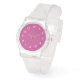 Dit moerbeihorloge met een roze band roept praktisch "stijlvol!" U zult genieten van de aantrekkelijkheid van het vetgekleurde uurwerk. Pas aan om de kleuren van de nummers te wijzigen (de standaardkleur is wit) of verwijder ze volledig (minuten worden op de band op bepaalde stijlen afgedrukt).