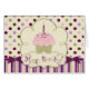 Zoete polka-puntprint met bijpassende stripe en 3D-look bow en verjaardagsverjaardagslabel en een zoete cupcake met kaars.