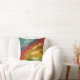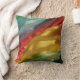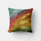 Dit stijlvolle kussen is voorzien van een foto van veelkleurige stof die doet denken aan een regenboog. De kleuren zijn van groen naar blauw naar rood naar goudgeel en weer terug naar groen. Het ontwerp is aan beide kanten.