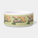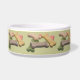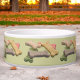 Botten voor de hondenkoekjesliefhebber. Voeg een beetje plezier toe aan uw hondeneetkamer met deze schattige kom. De cluster van kleurrijke groene, roze, bruine en beige tinten van honden bot foto's zijn verspreid over deze eetkom. Klik op Aanpassen! om de achtergrondkleur te wijzigen in iets dat u leuk vindt wanneer u naar Bewerken en Achtergrond gaat.