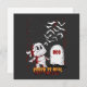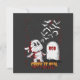 Playful bandaged mummy beside a Boo tombstone under a red starry rain. Bold orange text and retro cartoon vibe make it stand out on Halloween apparel and gifts.