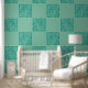 Munt blauwgroen flora betegeld behang