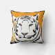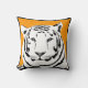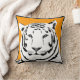 Een prachtig zwart-wit tijgerafbeelding op mosterdachtergrond met zwarte rand die de rand benadrukt. Het afbeelding wordt op zowel de rug als de voorzijde van het kussen gedupliceerd.