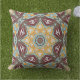 Mustard Yellow Red Brown Aqua Mandala Tribal Kunst Buitenkussen
