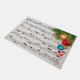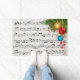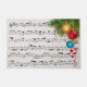 Blauwmuziek met kerstversieringen, groene dennen en lint.