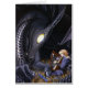 Een jonge, rode reuzenbaard zweeft een zilveren draak, die haar harp speelt tegen het licht van zijn gloeiende ogen. Ze zitten op de schatkisthoed van de draak, die vol zit met veel dingen (juwelen, munten, kronen, de kap van een Packard uit 1937 - normale spullen die draken verzamelen.) De talonen van de draak, de vleugel en de staart omarmen zijn muziekmaker, en je kunt de hele scène (inclusief de kunstenaar) zien weerspiegeld in zijn schitterende schalen. Dit was mijn eerste Dragon Magazine cover. Het origineel was 17 x 22 inch.