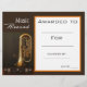 Een stijlvolle prijs voor een modern muziekcertificaat met een Euphonium-afbeelding dat ideaal is voor het aanmoedigen van een jonge muzikant of messengerspeler. Je kunt in je eigen details schrijven. Een geweldige bron voor een leraar in hersenen of muziek.