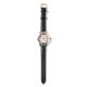 Een horloge met een elegant en nostalgisch design. Muziekblad versierd met een groot roze hart en roze rozen en wilde bloemen rond de randen.