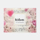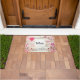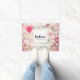 Welkom deurmat met een elegant en nostalgisch ontwerp. Muziekblad versierd met een groot roze hart en roze rozen en wilde bloemen rond de randen.