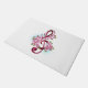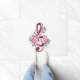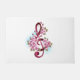 Roze verfsplaat met fijne, roze Japanse kersbloesems tegen witte achtergrond, omgeverfd met lichtblauwe verf. Roze sakura bloemen.