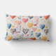 Een leuk rood blauw en geel muzikaal hartjes patroon gooi kussen