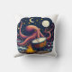 Een octopus speelt enthousiast een trommel bij een kampvuur, tegen een sterrenhemel met een gloeiende maan, en vangt een moment van creativiteit en natuur.